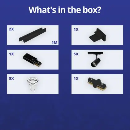 | Herstellername | Complete Straight 2-meter 1-Phase Track Set Black incl. 5x Spot fixture + GU10 2700K 3W Dim – 2x 1 M | |