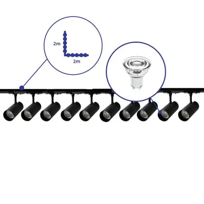 Bright Choice Komplettset 1-Phasen Rail L 2 x 2 Meter Schwarz | incl. 10x Spot + GU10 2700K 3W Dimmbar + Abschlusskappe, Stromanschluss und L -Verbinder