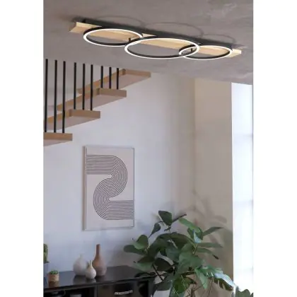 Eglo Deckenleuchte Boyal Holz Schwarz, Braun 24W 3400lm - 830