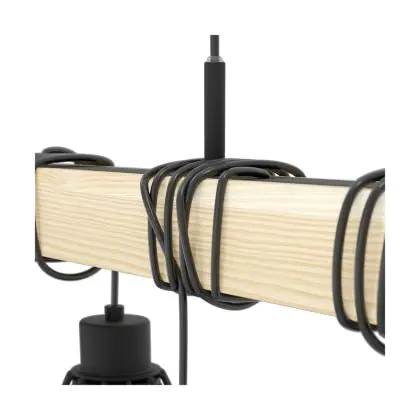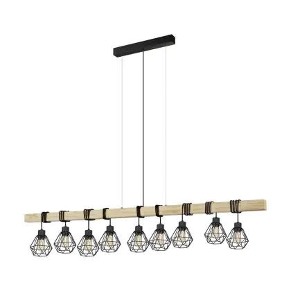 Eglo Pendelleuchte Townshend 5 Stahl Holz Schwarz | IP20 - Geeignet für 9x E27