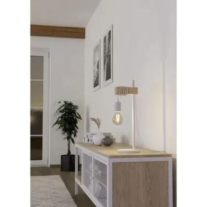 Eglo Tischlampe Townshend Stahl Weiß Holz | IP20 - Geeignet für 1x E27