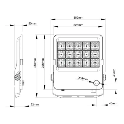 | Herstellername | Budgetlight LED Floodlight ProBeam V2.0 170W 23800lm 60D - 830-840-865 CCT | IP66 - Symmetrical | |