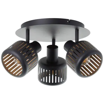 Brilliant Tyas Plafonnier Aluminium Métal Noir Dorée | 370mm - Convient pour 3x E14