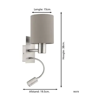 Eglo Applique Murale Pasteri Échantillon Nickel Satiné 40 | IP20 - Incl. Spot et Excl. 1x E27