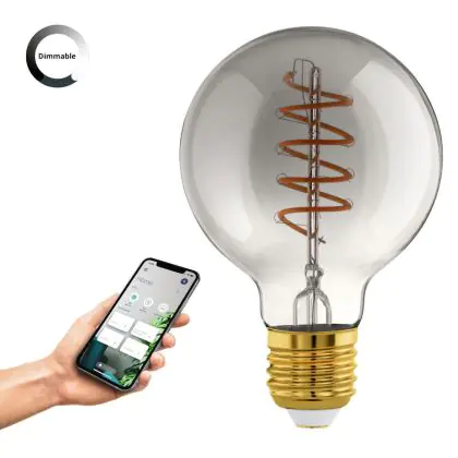 Cette ampoule Eglo Connect.Z Smart LED Globe E27 Filament Smokey 4W 150lm - 820 Blanc Très Chaud | Dimmable - Remplacement 15W est l’alternative idéale pour la remplacement de votre ampoule classique de 15 W. La technologie LED intégrée vous offrira de nombreux avantages. Les ampoules à incandescence traditionnelles ont une durée de vie limitée. Cette alternative LED vous permettra de profiter d’un éclairage durable et fiable.