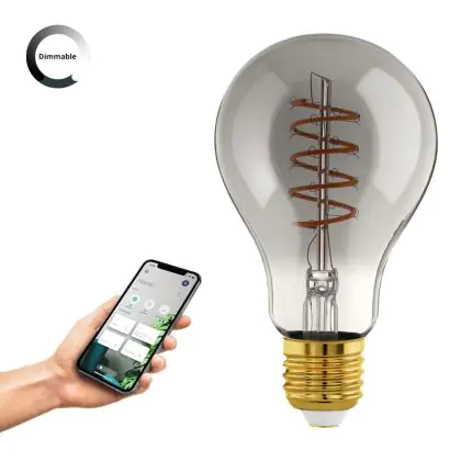 Description Eglo Connect.Z Smart LED Poire E27 Filament Smokey 4W 150lm - 820 Blanc Très Chaud | Dimmable - Remplacement 15W