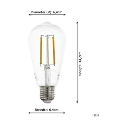 Description Eglo LED E27 Edison Claire Filament 6W 806lm - 822-865 Accordable Blanc | Zigbee Dimmable- Remplacement 60W