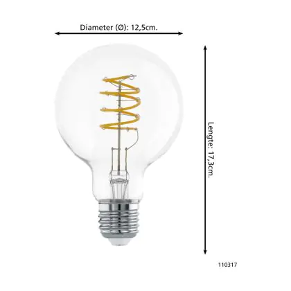 Cette ampoule Eglo LED E27 Poire Claire Filament 7.3W 806lm - 827 Blanc Très Chaud | Remplacement 60W avec son efficacité lumineuse de lumen par watt vous permettra de profiter d’un éclairage de qualité. Avec sa durée de vie de 25000 heures, vous n’aurez pas à vous soucier de son remplacement avant quelques années.