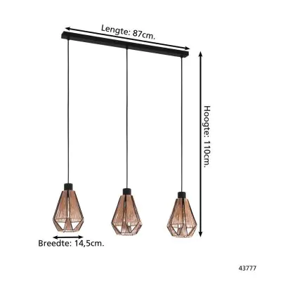 Eglo Suspension Luminaire Adwickle Échantillon Noir | IP20 - Convient pour 3x E27