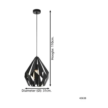 Eglo Suspension Luminaire Carlton 1 Échantillon Noir | IP20 - Convient pour 1x E27