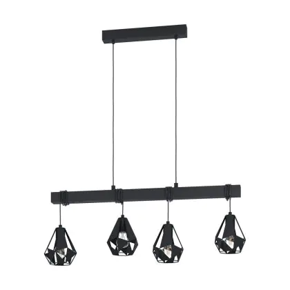 Eglo Suspension Luminaire Townshend 7 Échantillon Bois Noir | IP20 - Convient pour 4x E27