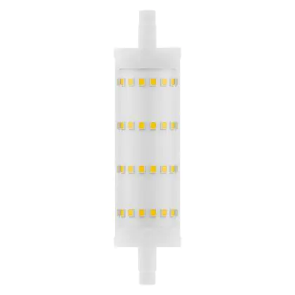 Ledvance Performance LED R7s double Ended 118mm Claire 13W 1521lm - 827 | Remplacement 100W est une ampoule tubulaire linéaire à double extrémité. Ce type d’ampoule permet de délivrer une lumière homogène à 360° avec comme température de couleur 2700K - Blanc Très Chaud. Cette ampoule LED R7s de chez Ledvance est la solution idéale pour le remplacement de vos anciennes ampoules halogènes. Cette ampoule LED n’a pas besoin de transformateur, elle fonctionne avec 230V et peut se connecter directement sur le secteur électrique.