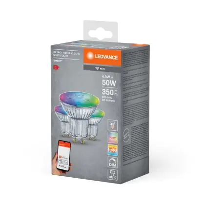 Description Ledvance Smart+ Wifi GU10 Spot 5W 350lm 45D - 827-865 Accordable Blanc | RGBW - Dimmable - Remplacement 50W