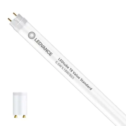 Lot 10x Ledvance Tube LED T8 Value (EM/Direct 230V) Standard Output 6.6W 800lm - 865 | 60cm - Remplacement 18W