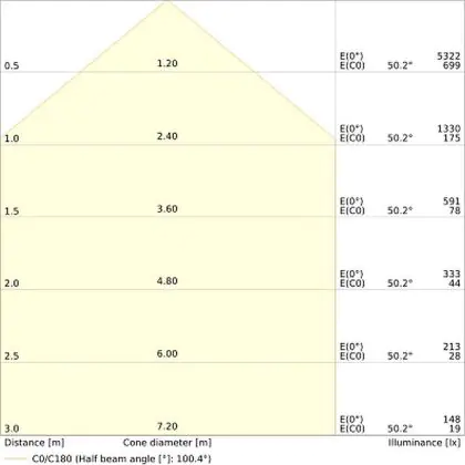 - Angle de diffusion: 100 °