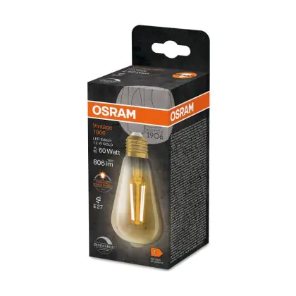 Osram Vintage 1906 LED E27 Edison Filament Dorée 7.2W 806lm - 824 | Remplacement 60W