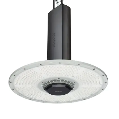 Le Philips Highbay LED Coreline BY122P G4 183W 25000lm 55D - 865 | IP65 - Dali Dimmable est un puissant luminaire qui est très souvent utilisé pour l’éclairage industriel. Ce luminaire suspendu propage un puissant flux lumineux de 25000 Lm et offrant un excellent rendu de couleurs par rapport aux luminaires traditionnels. Cet high-bay LED est capable de résister aux différentes températures extrêmes que l’on peut retrouver dans les hangars, entrepôts ou autres halls industriels. La technologie LED Intégré sur ce luminaire permet de faire d’importantes économies d’énergie. En effet, l’high-bay propose une puissance de 183W pour un équivalent de 400W pour les appareils classiques et dispose d’une durée de vie pouvant aller jusqu’à 50000 heures.