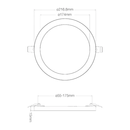 | Nom du fabricant | Budgetlight LED Downlight Ecowhite 18W 1530LM 3000/4000/6000K dimmable frame Φ217*H15 cutout 55-175 | |